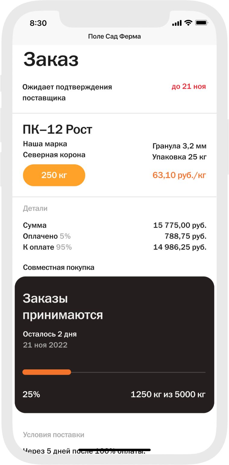 Поставщик исполняет заказ, если к заданной дате собран достаточный объём заявок